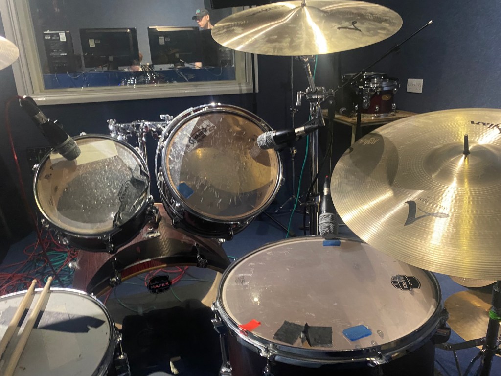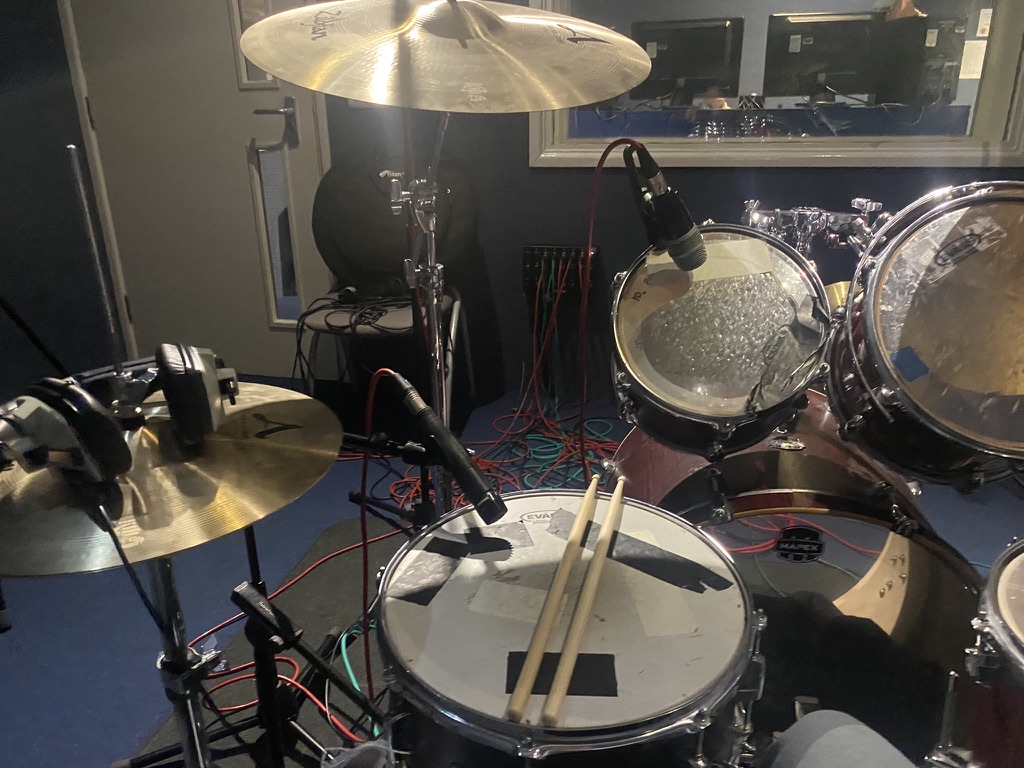 5th May – A major setback happened today, which caused a lot of time wasting, although it was pretty much out of our control! What happened was, I was in the studio this morning with Harvey and Lewis, and when I got in, none of the drum kit was set up like it usually is, so that took about 15 minutes of my time, plus 10 to set up the microphones. But what ended up happening when I was asked to do soundcheck by Lilac (one of the tech students), was that we couldn’t get any signal from the right overhead microphone. This caused a massive issue as the cymbals were something I really wanted to capture in this song in particular. When we finally got it working, the low tom microphone cut out as well, and this then created a new incident! It set us back by 1 hour and 45 minutes of studio time, and it made me and my band very frustrated as we know we are on a time limit with getting these recordings done. We eventually were able to get some takes of the song and I was really happy with the final outcome of the takes. However we could have done it so much quicker, and completed even more if it wasn’t for the issues at the start!