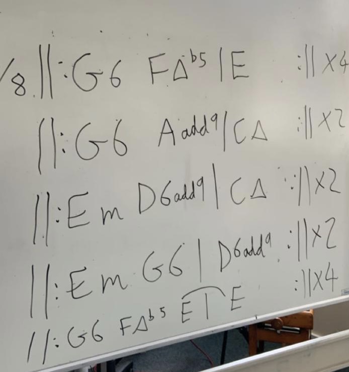 For playing ‘Home’, there was a key part of the song that we had to get perfect, or it would throw off the entire song, and also just make it sound awful. The part we had to get was a pause in the song where we counted two bars, and then had to come back in and continue. Well, this was the original plan before lyrics were written, however now there are some, we have to time it to the lyrics instead of the counting. You hear us attempt it, and then Lewis go through it with us to help guide us and let us know when we are meant to come in. The lyrics are ‘Oh, I’ve been waiting for you to come back to me”, and the ‘back’, was when we all joined back in as a band. It was really difficult at first as I think Lewis wouldn’t always sing the lyrics at the same speed or maybe he’d do a slightly longer pause just before he’d say the word, which obviously wasn’t intentional but luckily we got it in the end, as you can hear from the end of the video. This was then practiced a few more times after I finished recording so we could get it right.